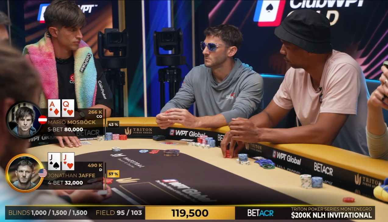 Для первого ролика Мосбек подготовил материалы из турнира, который сам по себе вызывает огромный интерес — Triton Invitational Montenegro с бай-ином $200 000. Это одно из самых элитных событий мирового покера, где за столами собираются признанные мастера и известные VIP-игроки. На Дне 1 Марио оказался за столом с Филом Айви, Артуром Мартиросяном, Леоном Штурмом и Джонатаном Джаффе — соперниками, с которыми попадают в одну раздачу лишь лучшие.